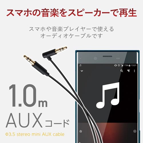 2. φ3.5AUXケーブル L型 1.0m ブラック