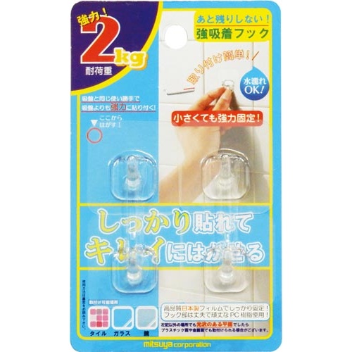 | 注意事項 | 荷重を守り、万一のために貴重品や、壊れやすいものは吊り下げないでください。取り付け場所の材質によりフックの強度が異なる場合があります。変形・火災の恐れがありますので高温になる所、火気の側などではご使用にならないでください。 以下の点にご注意ください