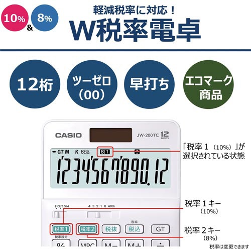 2. W税率電卓ジャストタイプJW−200TC−N12桁