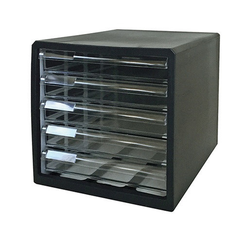 カラーレターケース ブラック 浅型5段