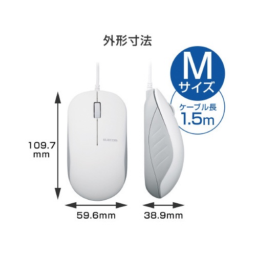 高耐久 BlueLED有線マウス3ボタン 白