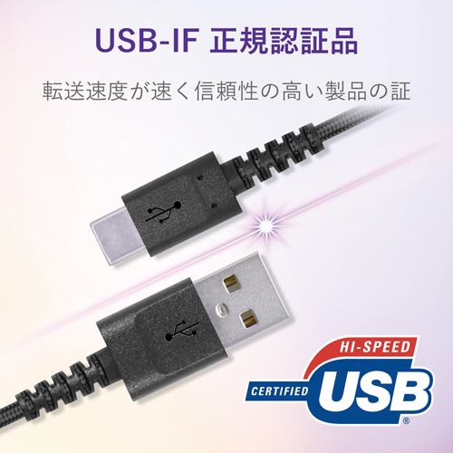 A−Cケーブル 高耐久 2.0m ブラック