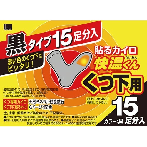 貼るカイロ 快温くん くつ下用黒タイプ 15足分入