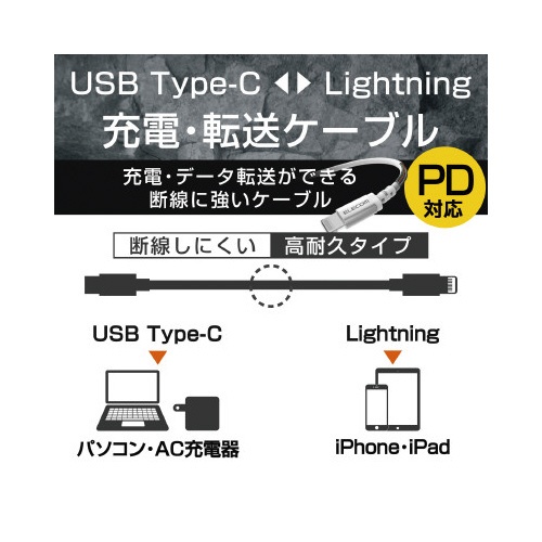 C−ライトニングケーブル/高耐久1.2m/ホワイト