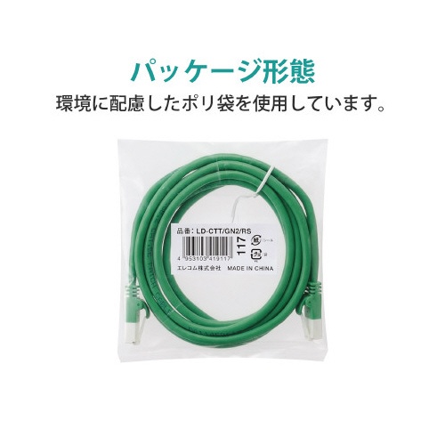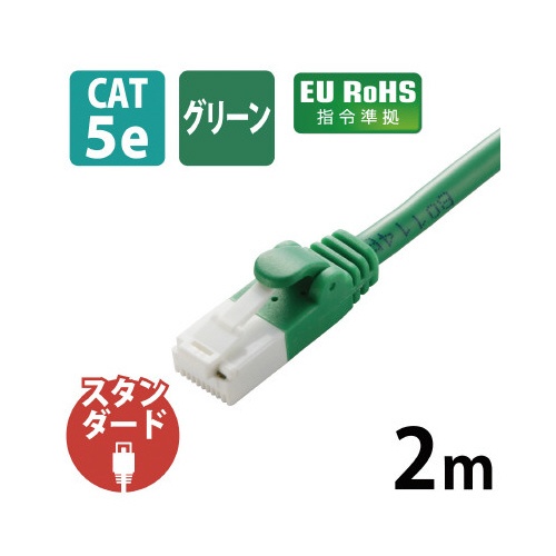 2. LANケーブル カテ5E 2mグリーン 簡易包装