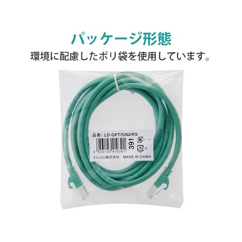 2. CAT6LANケーブル 2m/グリーン/簡易包装