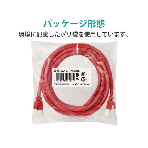 2. CAT6LANケーブル 3m/レッド/簡易包装