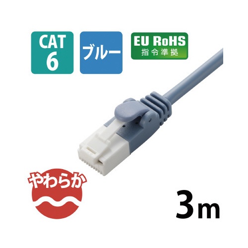 CAT6やわらかLANケーブル/3m/ブルー