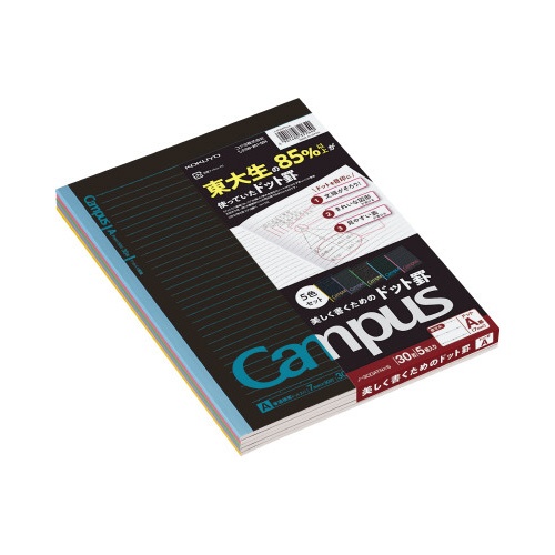 キャンパス5色ドット・ブラックカラーA罫 5冊