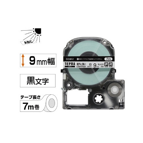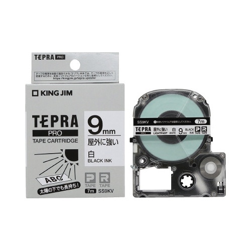 屋外に強いラベル 9mm幅 黒文字/白テープ