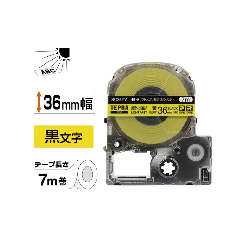 屋外に強いラベル 36mm幅 黒文字/黄ラベル