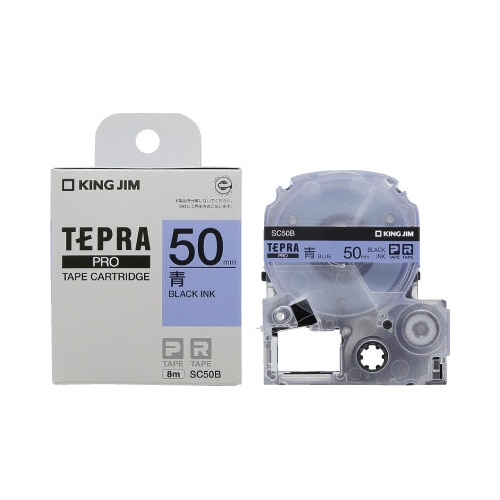 テプラ PROテープ パステル青ラベル50mm黒字