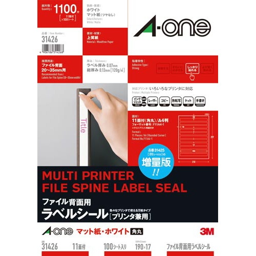 ファイル背表紙ラベル 兼用 A4 11面 100枚