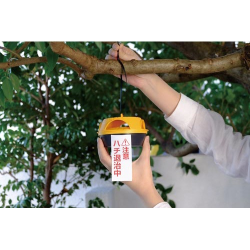 注意事項 | に設置してください。人の通り道や住居、ベランダなどから離して設置してください。スズメバチがあまり飛んでいない時間帯(早朝や夕方以降)に設置してください。周りにスズメバチがいないことを確認して設置してください。スズメバチの巣には近づかないよう注意してください。台風や暴風の際は本品が飛ばされたり、落下する可能性があるので事前に回収してください。子供やペットが触ったり、いたずらしないよう注意してください。 以下の点にご注意ください