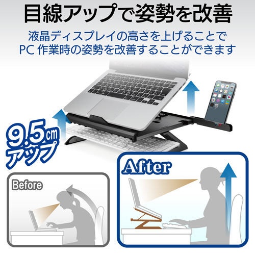 ノートPCスタンド/8段階/9.5cm/ブラック