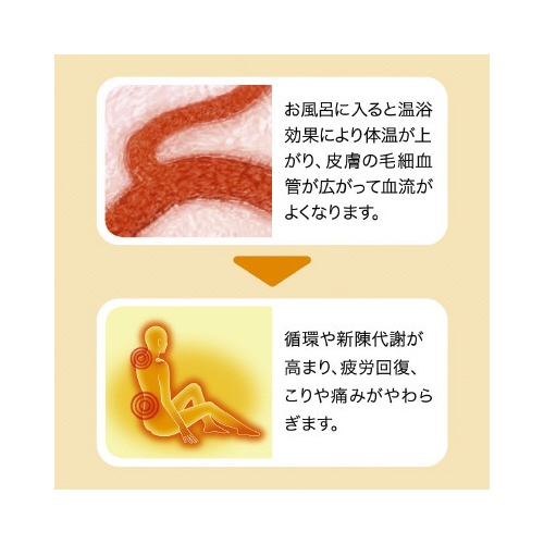 注意事項 | あるいは体質に異常がある場合は医者に相談して使用する。使用中または使用後、皮フに発疹、発赤、かゆみ、刺激感などの異常が現れた場合、使用を中止し、医師に相談する。浴槽、フロ釜をいためるイオウは入っていない。天然の大理石浴槽には使わない。浴槽の汚れに入浴剤の色素が付着して色がつくこともあるので、汚れは早めに浴室用洗剤で落とす。入浴剤を溶かしたお湯を追い炊きすると、ぐくまれに配管やフロ釜の汚れが出てくることがある。 以下の点にご注意ください