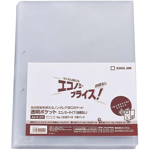 A4透明ポケットエコノミータイプ2穴50枚中紙なし