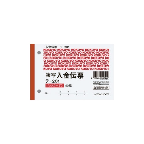 入金伝票 B7ヨコ型50組 バックカーボン