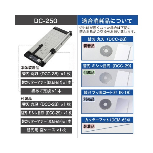 ※購入時は丸刃(DCC−28)とカッターマット(M−250)が本体に装着済みです