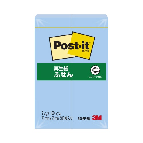 ポストイット 再生紙ふせん 75×25 ブルー2冊