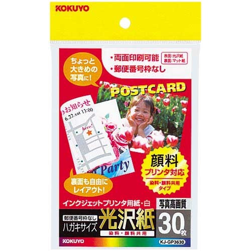 IJP用はがきサイズ光沢 郵便番号枠なし 30枚