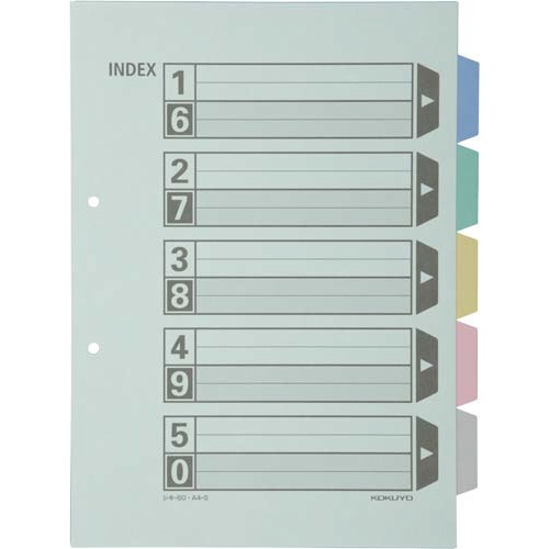 カラー仕切カードお徳用 A4縦 2穴 5山100組