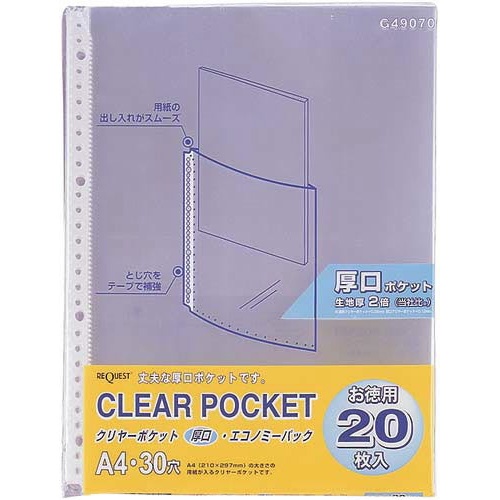 クリヤーポケットA4縦 厚口 30穴 20枚