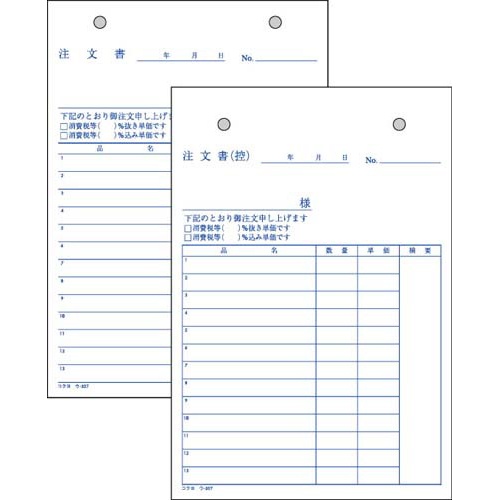 注文書 B6 ノーカーボン ウ−327 10冊