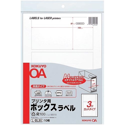 プリンタ用ボックスラベルA4無地3面カット 10枚