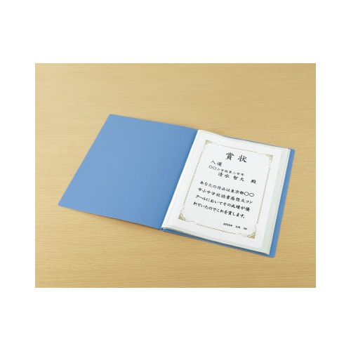 賞状ホルダーPP A3ポケット10枚 青