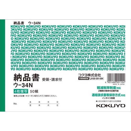2. 複写簿 B6 4枚納品書 ウ−34 N10冊