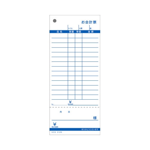 お会計票・徳用タイプ勘定書付き テ−375N 5冊