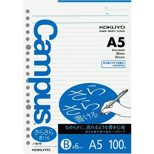 キャンパスルーズリーフA5 20穴 B罫 100枚