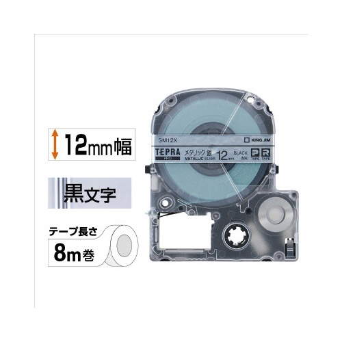 テプラPROテープ メタリック銀ラベル12mm黒字