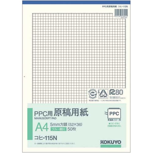 PPC用原稿用紙A4縦5mm方眼青刷り50枚×10