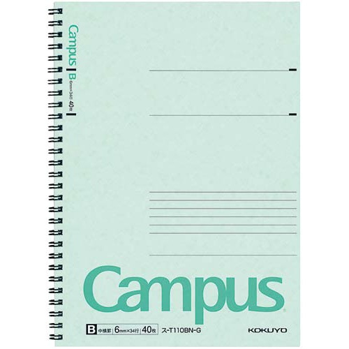 キャンパスツインリングセミB5 B罫40枚緑×10