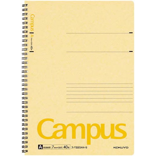 キャンパスツインリングA4 A罫 40枚 黄×5冊