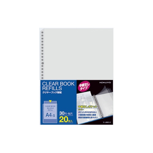 クリヤーブック替紙 中紙なし A4縦30穴 20枚