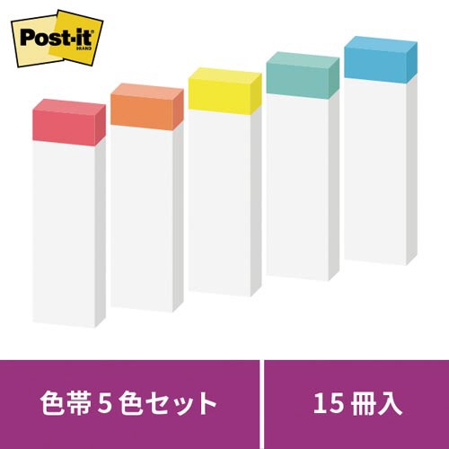 ポストイット 強粘着50×15 色帯5色 5冊