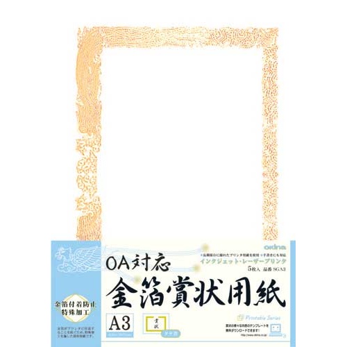 OA対応 金箔賞状用紙A3横型タテ書 5枚入