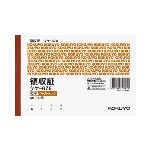 複写領収証A6ヨコ型50組 二色刷ノーカーボン
