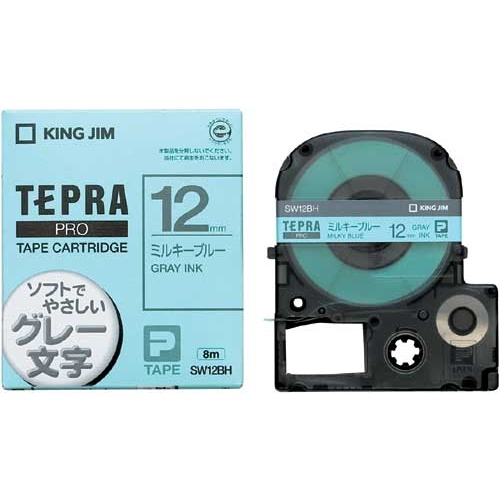 2. テプラ PROテープミルキー青 グレー文字12mm