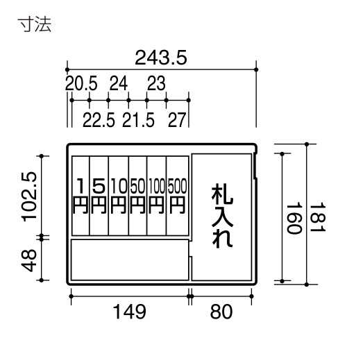 ※内寸はトレーを入れた場合のトレー底面までの有効寸法となります。