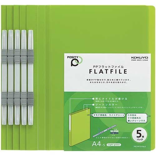 PPフラットファイルポジティ A4縦 薄緑 50冊