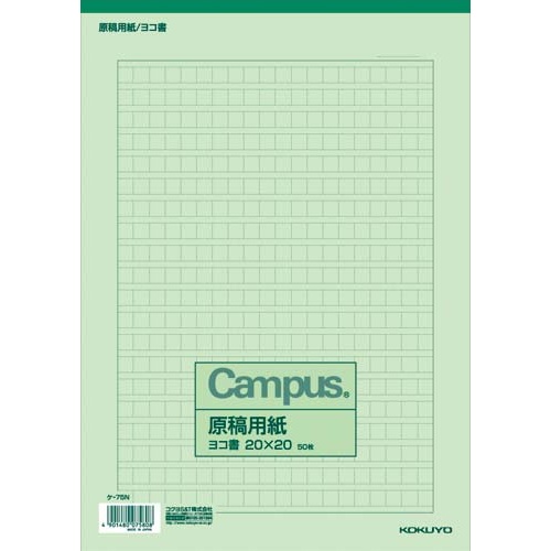 原稿用紙A4横書き20×20 罫色緑 50枚