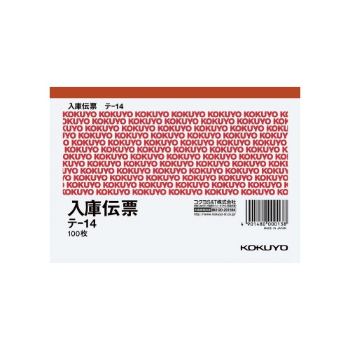 入庫伝票 A6ヨコ型 100枚 テ−14