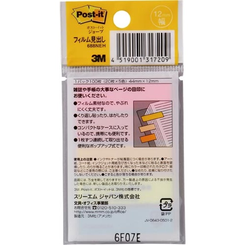 ポストイット ジョーブ 12mm幅 蛍光混色