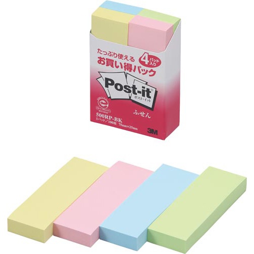 2. ポストイット 再生紙ふせん 75×25 混色 4冊