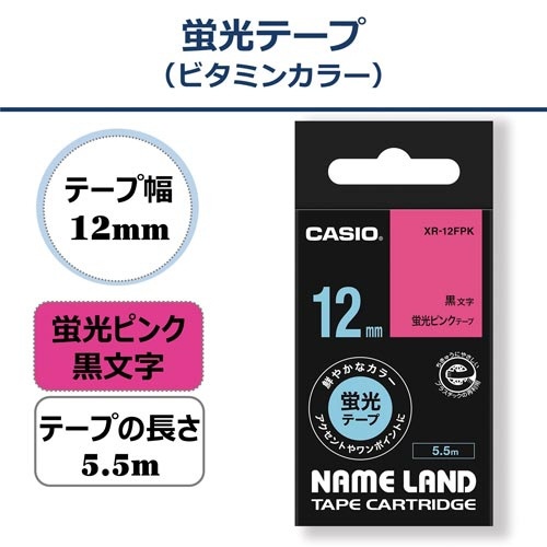 ネームランド 蛍光ピンクテープ 12mm 黒文字