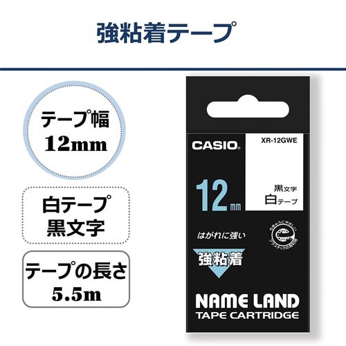 ネームランド 強粘着白色テープ 12mm 黒文字